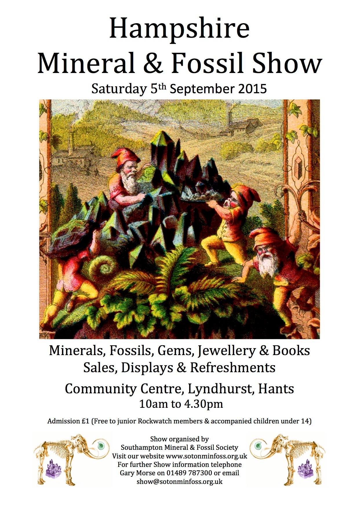 The Hampshire Mineral & Fossil show is on Saturday 5th September at its usual venue in Lyndhurst Community Centre.