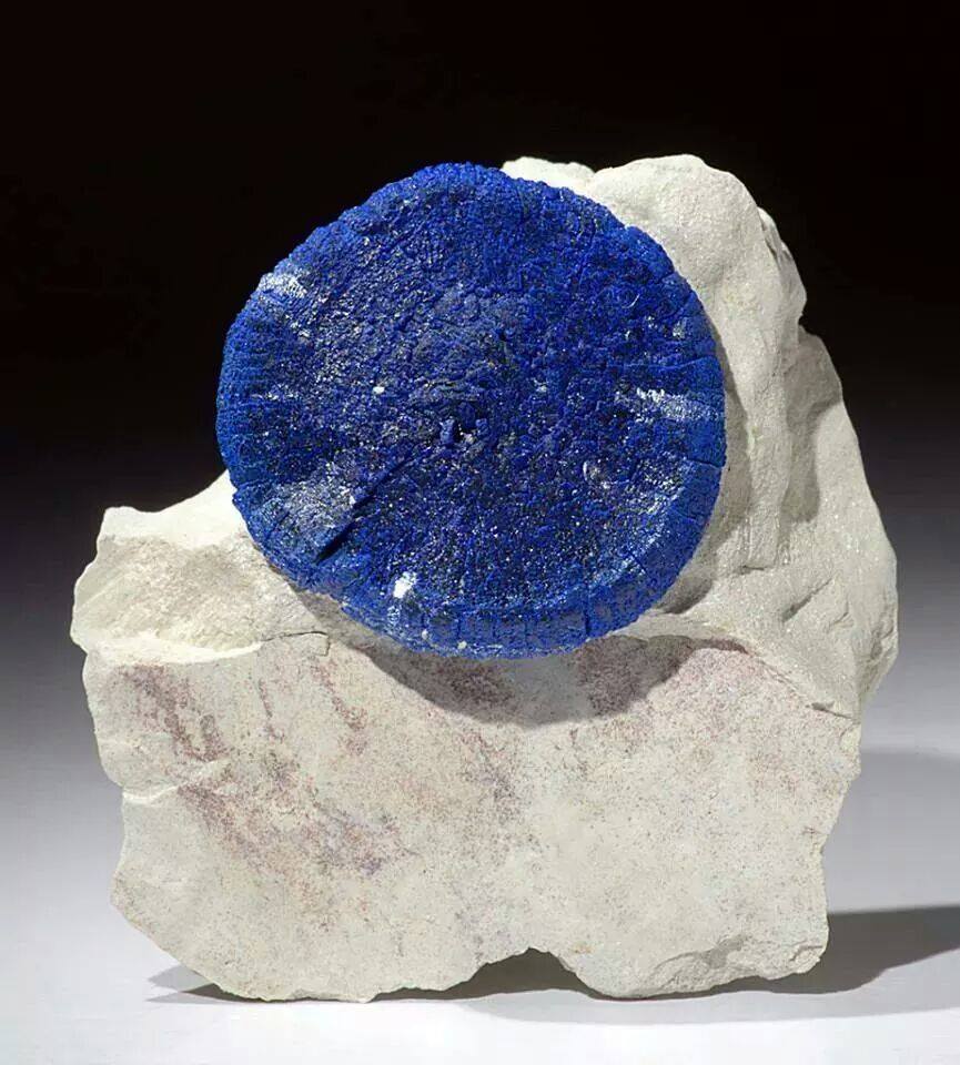 The azurite (and some malachite) specimens have a very distinctive disc-like "sun" habit and the blue is striking against the pale cream/white kaolin matrix.