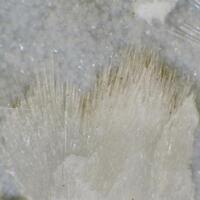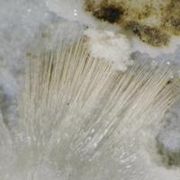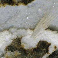 Rare Ca-Al-silicate mineral as white porcelanous masses and "snow ball" like aggregates  with gonnardite sprays on basaltic matrix.