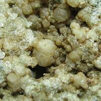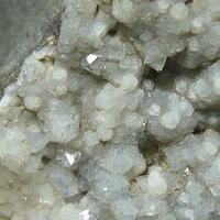 9. Phillipsite: spheres of white crystals, with colorless octahedron of gismondina, Vallerano, Rome, Latium, Italy;