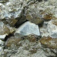 2. Gehlenite: Brown crystals, Valle Biachella, Sacrofano, Rome, Latium, Italy;